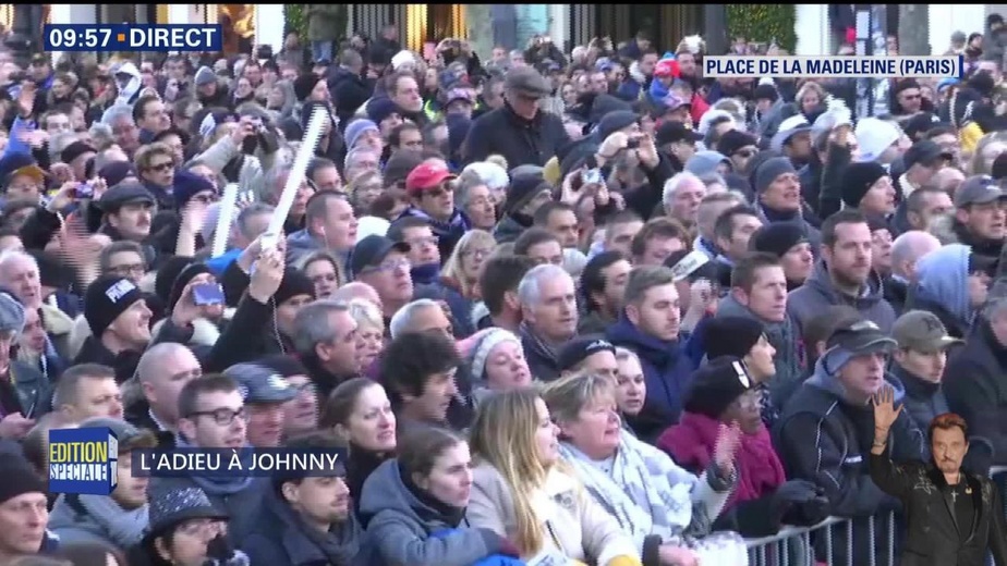 POUR TOI JOHNNY NOTRE GRAND FRÈRE PLUS D'1 MILLION DE FANS DE TOUS MILIEUX ONT SUIVIS JOHNNY QUI AVANT D'ÊTRE UNE IDOLE ÉTAIT POUR EUX UN GRAND FRÈRE,UN AMI UN SOUTIEN DANS LES MOMENTS DIFFICILES OU UN COMPLICE DANS LES MOMENT DE BONHEUR. UNE CÉRÉMONIE SANS HEURTS,SANS BAGARRES SANS VITRINES CASSES OU VOITURES INCENDIÉES .UN HOMMAGE A UN MEMBRE DE SA FAMILLE,DES AMIS QUI MALGRÉ LE FROID ET LA NEIGE ET LA PLUIE ONT ATTENDU DES HEURES POUR LE VOIR PASSER JUSTE UNE SECONDE..........................................DE PAUVRE CONS QUI N'ONT D'AUTRES AMBITIONS DANS LEUR VIE QUE DE CRITIQUER CE QUI LES DÉPASSE,PAR JALOUSIE,PAR MÉCHANCETÉ PARCE QUE JAMAIS EUX N'AURONT UN HOMMAGE COMME CELUI DE NOTRE GRAND FRÈRE JOHNNY ,UN HOMMAGE POPULAIRE DANS LA BEAUTÉ DE CE QU'IL REPRÉSENTE, L'AMOUR D'UN PEUPLE QUI L'ONT SUIVI, A PIED,EN VÉLO,EN MOTOS SEUL OU AVEC DES ENFANTS DANS LES BRAS,ILS ONT DESCENDU AVEC LUI LA PLUS BELLE AVENUE DU MONDE, LAISSONS CES PAUVRES CONS A LEURS CRITIQUES ;ILS NE VALENT PAS LA PEINE QU'ONT LEUR DONNE DE L'IMPORTANCE -- " MERCI JOHNNY " POUR TOUS CES SOUVENIRS A JAMAIS DANS MON CŒUR " ROLLMOPS "