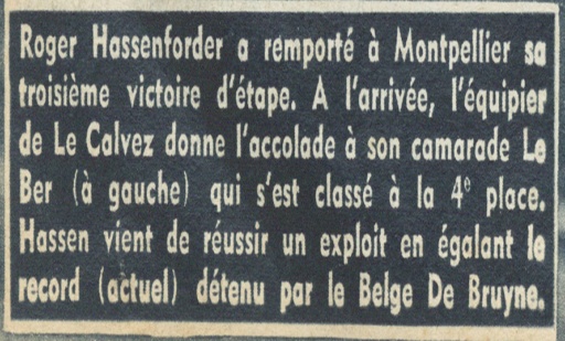 Dès octobre 1950, le service militaire continue de mettre sur la voie du cyclisme Roger Hassenforder, qui en profite pour apprendre le français. « Je suis allé au régiment à Reims, au 4e Cuirassier, où je suis devenu ‘'Hassen''. Sur le circuit automobile a eu lieu le Trophée Simplex, on était 250 au départ. Il y avait une dizaine de sélectionnés pour l'Alsace, je suis allé les chercher à la gare. Je leur ai dit que j'allais gagner, ce que j'ai fait. Les directeurs sportifs se sont jetés sur moi. Quelqu'un m'avait dit de ne pas signer et qu'Antonin Magne était un gars sérieux ». Le Haut-Rhinois a entamé sa carrière de cycliste professionnel avec cet ancien double vainqueur du Tour de France, en 1931 et 34. « Je me suis défoncé pour le maillot jaune »