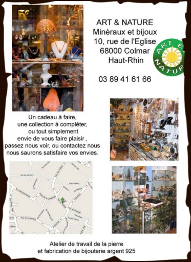 !!! ART & NATURE Minéraux, Pierres roulés, bijoux, créations, PIECES UNIQUE ADRESSE ART ET NATURE 10 RUE DE L'EGLISE 6800 COLMAR TEL 03 89 41 61 66