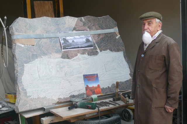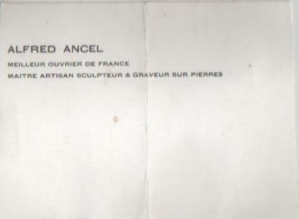 MON AMIS ALFRED ANCEL MEILLEUR OUVRIER DE FRANCE & MAITRE ARTISANT SCULPTEUR & GRAVEUR SUR PIERRES PLUS DE 86 ANS A REALISER MON VOEUX MERCI MON CHER AMIS